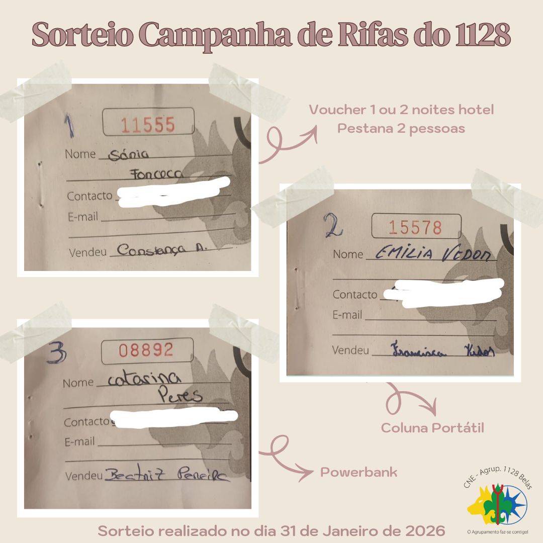 Conforme anunciado, realizou-se no dia 31 de Janeiro, no final da Missa das 18:30, na igreja paroquial de Belas, o sorteio da campanha de rifas levada a cabo pelo agrupamento 1128 nos meses de Novembro a Janeiro.